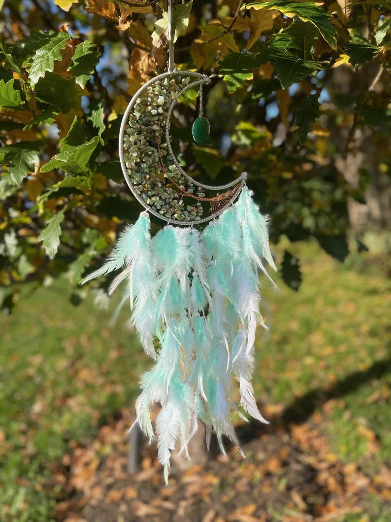 Enhance your space with our enchanting Green Aventurine Crystal Dreamcatcher, designed to bring positivity and protection. Adorned with shimmering crystals, this stunning piece not only captures dreams but also adds a touch of elegance to your home decor. Each dreamcatcher is handcrafted with love, making it a unique addition to any room. Perfect as a gift for loved ones or as a special treat for yourself, our Crystal Dreamcatcher blends traditional artistry with modern flair. Transform your dreams into reality today!